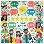 DALL·E 2025-08-19 17.50.59 - A square, hand-drawn style illustration symbolizing customer reviews. The artwork features a cheerful and diverse group of people with their dogs, sur |